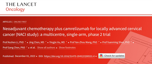 [1].Kezhen Li, Jing Chen, Yingjie Hu, Yan-Zhou Wang, Yuanming Shen, Gang Chen,Jihui Ai, Ding Ma,Chaoyang Sun,et al.Neoadjuvant chemotherapy plus camrelizumab for locally advanced cervical cancer (NACI study): a multicentre, single-arm, phase 2 trial.Lancet Oncol. Published:December 01,2023. DOI:https://doi.org/10.1016/S1470-2045(23)00531-4.